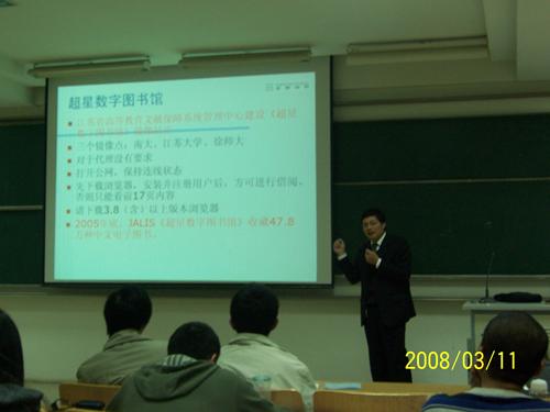 3月11日晚上18:30-20:30,图书馆文献查新与教研室的颜世伟老师在仙林教三401室为我校本科生作了一场题为《图书馆电子资源利用》的学术讲座。讲座由图书馆主办、校“读书协会”承办。图书馆部分老师和“读书协会”的主要干部均出席了此次讲座。