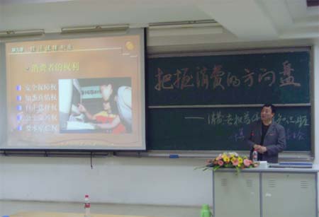 焦泉教授分别就消费者的权利、经营者的义务与争议解决和法律责任展开了演讲。《消费者权益保护法》规定,消费者享有安全保障权、知情权、自主选择权、公平交易权与要求赔偿权等多项权利,经营者则需相应承担接受监督、保证商品和服务安全、提供真实信息与不侵犯消费者人格权等义务。焦泉教授就权利与义务中的方方面面列举了自己亲眼所见、亲身经历的消费者权益受侵犯与维护的事例。一个个真实的案例被焦教授充满风趣的语言描述得生动幽默,在座的学生听得聚精会神,并不时发出由衷的掌声和笑声。