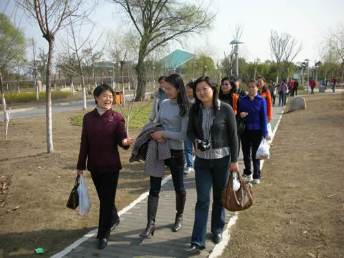 南京绿博园东靠滨江大道、西临长江夹江、毗邻奥体中心、与江心洲隔岸相望,整个园区依江伴水、景色宜人。3月的园区,春意盎然,一片生机。女教工们兴致勃勃地漫步在园区里,尽情地享受阳光、江风和新鲜空气。扑面而来的春天的气息,使女教工们放松了心情、释放出压力,增添了生活的情趣。通过春游活动,还进一步加强了女教工之间的交流,增进了彼此的友谊。