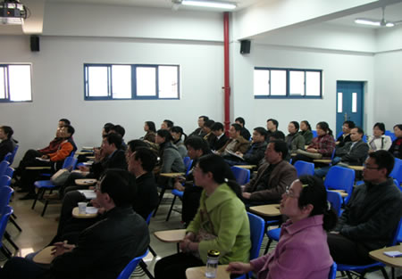 Majewski博士阐述了通过计算机技术推动数学教育,通过数学软件引入课堂来根本改变数学教学模式的理念。他给大家介绍了Maple、MuPAD、Scientific Workplace等数学软件,并当场演示了这些软件在数学教学中的应用。随后各位老师用英语和Majewski博士做了良好的互动,大家对教学中使用什么样的数学软件以及什么是学生学习中最主要的方面等问题进行了热烈讨论,Majewski博士还为大家介绍了一些学术会议,并欢迎各位老师参加以便有机会进一步交流。