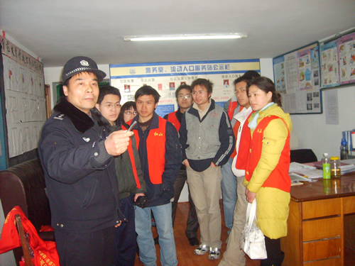表扬信中写道:社会科学系05级2班的肖茂英、邓文婷、冯丽娜、高磊等10位同学,于2008年2月底3月初在玄武红山街道月苑社区参与社会实践期间,以社区服务志愿者的身份会同社委会组织“回归有声世界、共迎百年奥运”关爱聋人健康活动,为残疾人发放康复知识读本,给残疾人讲解康复知识。在月苑小区出新改造建设前期宣传调研中,深入社区发放征询意见表等。他们还积极参与南京市政府倡导的“2008和谐民警相约警务室”活动,参观月苑警务室、红山派出所警务装备、监控指挥室、审讯室、玄武法院锁金村法庭红山审判点,与民警零距离接触对话、探讨交流社区巡防、交通安全、小区防范等知识,认真听取派出所教导员王炜和陈通营的讲解,咨询当前居民小区的治安形式和社区发案及防范措施等情况。当他们得知我社区建立由社区单位、低保人员、治安积极分子等组成的义务巡逻队和“回收废品、义务巡逻”便民服务队后立即加入并坚持排班巡逻,还利用“小喇叭喊话”、发放“安全防范提示卡”、张贴“警方告示”、“警方友情提醒”、用图板义务宣传讲解等方式在小区内营造群防群治的氛围。他们还多次利用休息期间到月苑社区穿上红山党员义工服、戴上红袖章、手持“小喇叭喊话器”呈巡逻队形出现在月苑一村、二村、三村等居民小区宣传播放:“居民朋友们!请关好门窗,锁好车辆,防火防盗,遇有警情请拨打110…….”一个平安、有序、和谐的小区正逐渐呈现在人们面前,群众安全感有了进一步增强。玄武党建网、玄武公安网分别以“回归有声世界,共迎百年奥运”、“巡逻防范队伍中的大学生身影”、“大学生与社区民警零距离”为题作了报道。