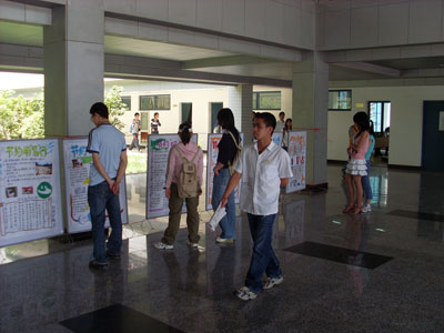 节约校园行活动以展板的方式进行。近日,在南二食堂广场展出的海报上有丰富的“节约”常识,如节约的重要性,生活中的节约小常识,如何更好的节水、节电……张贴的有关浪费事例的图片在提倡节约的同时也警醒同学们要唾弃奢侈浪费的作风。活动期间,校团委副书记何海洋老师观看了展板。