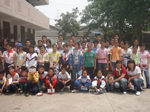 经过前期充分的沟通与准备,5月17日一早,我院志愿者一行十几人就来到明光金都外来工子弟学校,和该校的孩子们真情互动。活动包括奥运英语讲座、文艺演出、篮球友谊赛以及丰富多彩的游艺活动,活动最后大家在横幅上共同写下了对北京奥运的期盼以及对地震灾区人民的祝福。