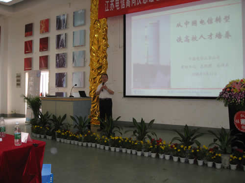 随后,高总为在场学生做了题为“从中国电信转型谈高校人才培养”的讲座。介绍了中国电信战略转型总体思路和内涵,又针对战略转型对人才的需求的影响并结合大量实例进行分析。针对企业对人才的需求,高总对南邮的学生提出几点希望:一是要制定具有挑战性的目标;二是要夯实基础;三是知识与能力并重;四是养成良好的职业道德。