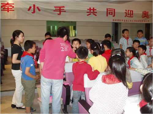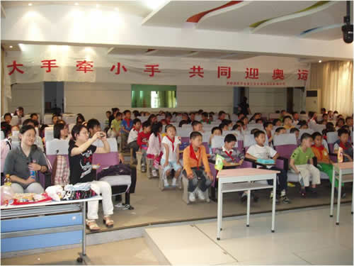 为迎接即将到来的2008北京奥运会,普及奥运知识,我校通信与信息工程学院学生第三党支部于5月20日赴拉萨路小学银城分校,为那里的小朋友带来了一场关于奥运知识的讲座。