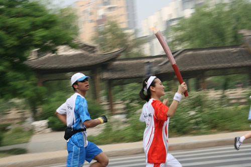 我校通信与信息工程学院曹志、杜明月两位同学还作为火炬手分别参加了此前在上海、扬州的火炬传递活动,广大同学正以实际行动为北京奥运贡献自己的一份力量。