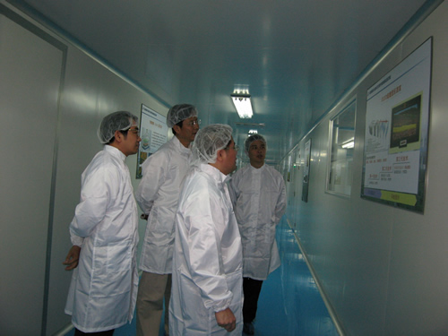 2008年5月27日下午4点,南京市政府副秘书长施卫国、市科技局黄敏局长等领导到信息材料与纳米技术研究院(以下简称“材料院”)考察。在我校副校长、材料院院长黄维教授和科技处处长施琴芬教授等陪同下,南京市政府领导一行来到江苏省有机电子与信息显示重点实验室和江苏省平板显示与固体照明工程中心,考察了有机薄膜与原型器件制备实验室、有机电致发光(OLED)显示器件中试实验线和硅基液晶(LCoS)微显示器中试量产线,饶有兴致地参观了该院近期研发的部分发光显示、传感、光伏、存储材料和原型显示器件等样品。随后,材料院副院长凌启淡教授向科技局的领导作了工作汇报,介绍了有机信息显示产业的历史与现状,展望了有机信息显示产业的美好前景。