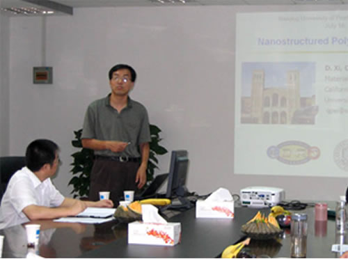 2008年7月16日,受我校材料院院长黄维教授邀请,美国加州大学洛杉矶分校裴启兵教授来我校访问、交流,并作了题为“Nanostructured Polymer Solar Cells”的精彩报告。报告会由材料院副院长凌启淡教授主持,在仙林校区教5楼四楼会议室举行。