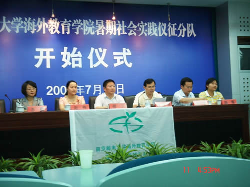 7月11日下午,扬州仪征市政府在扬州仪征市图书馆为南京邮电大学海外教育学院仪征队举行了隆重的启动仪式。在仪式正式开始之前,政府组织播放了仪征市宣传片,主要介绍了改革开放以来仪征经济发展的显著成绩。接下来海外教育学院副院长方宗祥发表了讲话,他对此次活动给予了充分的肯定和无限的希望,并预祝此次活动圆满成功。紧接着,学生会主席毛心悦代表全体学生做出承诺。