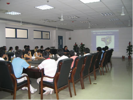 郭太良教授首先介绍了场致发射显示(FED)器国内外市场及项目情况,然后指出福州大学在FED项目上的特点及优势等,最后还分析了FED场致发射显示器面临的世纪机遇与挑战,展望了中国的FED事业。报告会上,教授盛赞我院在有机电致发光显示(OLED)领域取得的突出成绩,并与在座师生就共同感兴趣的问题进行了热烈的讨论和交流。