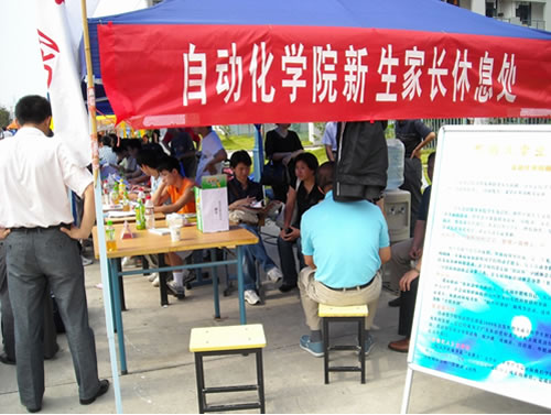 今年我们还特意在迎新服务站点加设了一个帐篷作为新生家长休息处,让舟车劳顿的家长们暂解疲劳。同时又设立了“楼道志愿者”,把服务送到了宿舍里,为新生提供现场咨询,提示大家在宿舍里注意安全防范,提醒新生及家长拒绝推销人员,避免上当受骗。近距离的服务,及时的排忧解难,赢得了新生和家长的不少称赞。