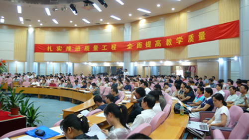 全体中干(含非领导职务)、全体教授、各院(系)教学机构负责人、教学秘书、各类教学成果获奖教师、校教学督导老师、教务处全体工作人员及其他相关人员参加了大会。
