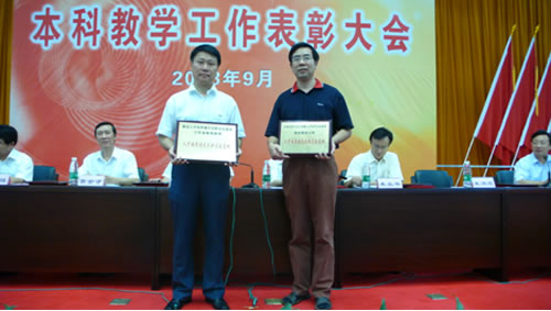 学校对2007年以来获国家级品牌特色专业建设点、国家级精品课程、国家级精品教材、省级教学成果奖、省级品牌特色专业、省级精品课程、省级人才培养模式创新基地、省级精品教材、省级优秀高校毕业设计论文指导老师等14个奖项的单位和个人进行了表彰。在热烈的掌声中,杨震校长、杨庚教授等几十位获奖者和获奖单位代表依次上台领奖。