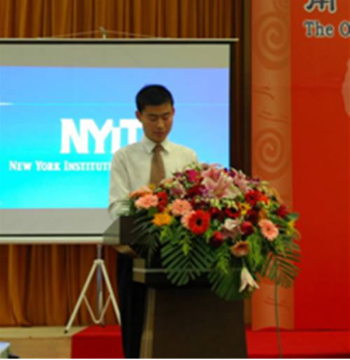 Edward Guiliano校长在热情洋溢的讲话中多次插播短片,介绍了毕业学生授予学位的盛况,以及参加联合培养的首批赴美的五位同学在纽约理工学院学习、生活的具体情况,使得新同学们都沉浸在对未来学习生活的美好憧憬中,而纽约理工学院的独特的魅力也已深深映入学生的心田。