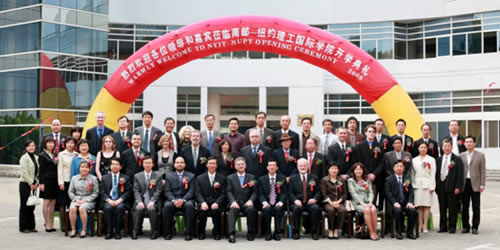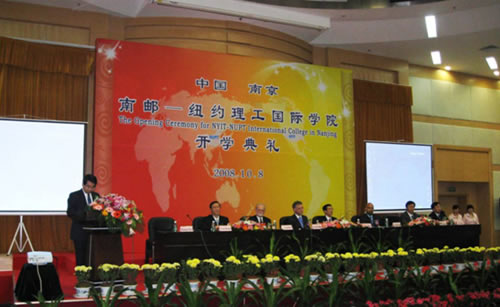 2008年10月8日下午,“南邮—纽约理工国际学院”2008级新生的开学典礼新生开学典礼在三牌楼校区隆重举行。我校校长杨震、党委副书记曹金才、副校长朱永平、副校长黄维、副校长刘陈,纽约理工学院校长Edward Guiliano、副校长Cyrus Reed、副校长Marc Warner于主席台就座,江苏省教育厅国际教育合作与交流处郭新宇主任、纽约理工学院校长特别助理维多利亚•佩佛女士、纽约理工学院校友代表新一佳超市总裁李彬兰女士以及我校相关职能部门和二级学院的负责人参加了典礼,开学典礼由副校长黄维教授主持。2点30分,在庄严的国歌声中,开学典礼准时开始。