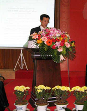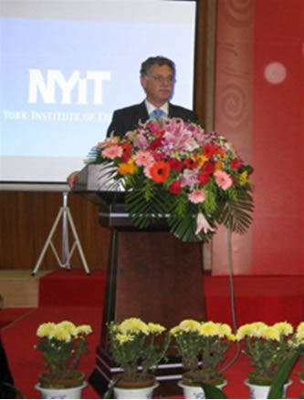 杨震校长代表南京邮电大学首先致辞,向南邮—纽约理工国际学院的各位新同学表示诚挚的祝贺!向远涉重洋来我校参加典礼的爱德华·朱利安诺校长一行、美国纽约理工学院的各位教师和朋友表示热烈的欢迎!向来参加开学典礼的各位领导和嘉宾表示衷心的感谢!杨震校长在讲话中指出,国际合作办学成为当今教育全球化发展的一种必然趋势,也是我校实现教育国际化的必由之路,是深化教育改革,实现超常规、跨越式发展的重要契机。学校新一届领导班子上任伊始,对拓展我校海外合作办学给予了高度关注。二年多来,我校对外交流与合作工作不断取得新成绩,并在多年对外交流的基础上,积极探索中外合作办学的新模式,中外合作办学已成为我校培养高素质创新型人才的一条新途径。建设南邮-纽约理工国际学院,是学校深化教育改革,积极应对教育国际化的必然举措。