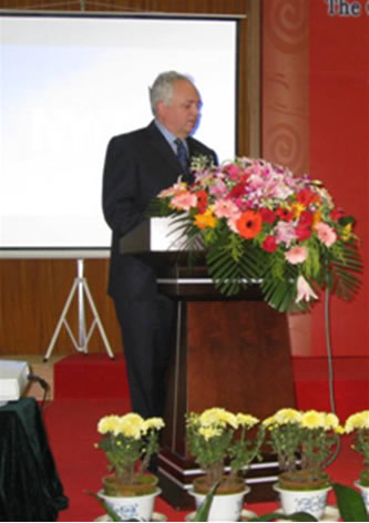 在双方校长互赠纪念品后,国际学院美方院长James Nolts博士、纽约理工学院校友代表新一佳超市总裁李彬兰女士、07级老生代表蔡岩、08级新生代表周荧分别发言,对新生们提出了很好的希望,并表达了对于未来的信心和希望。