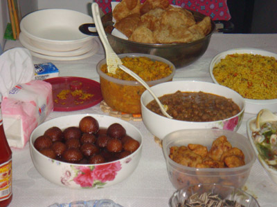 还未走到六楼,就已见到罗杰先生在门口向我们招手了,女主人更是身着印度服装热情的招呼客人,布置优雅的餐厅里弥漫着浓浓的香味,师生的欢声笑语不断,屋外排列的萤萤灯光闪烁着美丽的色彩。女主人端出一道道传统印度菜请客人品尝,向他们介绍各种传统的印度菜,客人们一边品尝着佳肴,一边听着主人们的介绍,不时伴随着笑声,整个餐厅都沉浸在温馨喜庆的氛围中。