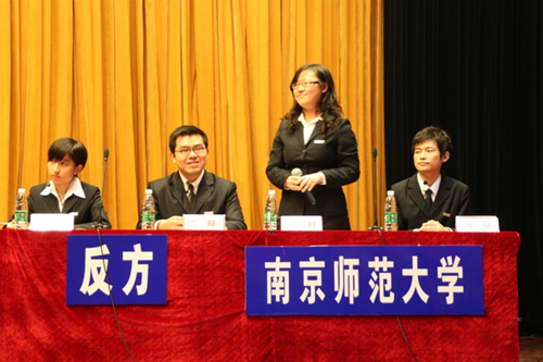 经过一个小时的激烈辩论,评判团退席经过慎重审议评定出最终结果。本场比赛最终获胜方是南京师范大学,最佳辩手是来自南京信息工程大学的三辩苏致远同学。比赛由南京邮电大学人文与社会科学学院党委副书记李承晟做最后点评,他提到双方队员气势如虹,不分上下。无论是在观点、知识点和技巧方面均表现优异,双方风度潇洒,思维活跃,思想深刻,占有材料丰富。论证基本严密。但也指出双方选手因时间限制,立论还不够清楚,缺乏数据和事例。