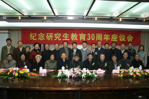 11月23日下午,纪念研究生教育30周年座谈会在三牌楼校区科学会堂第三会议室热烈举行。我校前三届研究生导师欧阳珉、毕厚杰、徐思均、范懋本、吴同,研究生部历任老领导谷熙娟、王绍南、廉静亚、郭香兰、郑宝玉、吴蒙、李美丰,和78、79、80级硕士研究生代表及第一批博士研究生代表李飞欢聚一堂,共同回顾研究生教育的往昔。会议由研究生部主任蒋国平主持,副校长朱洪波到会致辞。研究生部副主任王辛京、宋建新及研究生部全体工作人员也参加了座谈会。