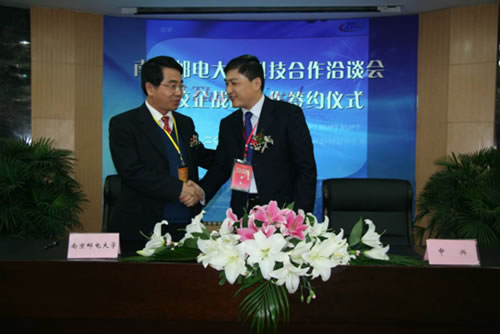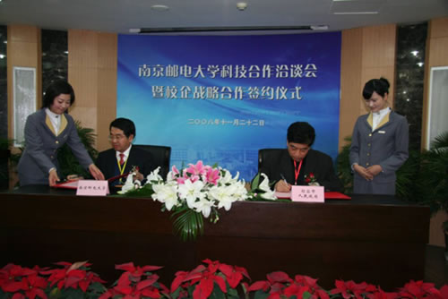 2008年11月22日下午3点,在三牌楼校区科学会堂一楼演讲厅,我校“两会三庆”活动之“南京邮电大学科技合作洽谈会暨校企战略合作签约仪式”隆重举行。出席会议的有句容市周春芳副市长及中兴、中国联通、中天科技股份有限公司等企业家代表30余人。黄维副校长出席会议并致欢迎辞,科技处施琴芬处长主持了此次盛会。参加会议的还有自动化学院院长王保云、软件学院院长宗平、通信与信息工程学院副院长李晓飞、计算机学院副院长陈丹伟、光电工程学院副院长钱晨、信息材料与纳米技术研究院副院长凌启淡和相关教师代表。