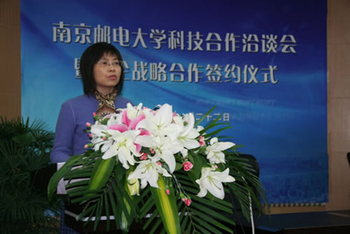 科技处施琴芬处长在此次大会上就我校科研发展总体情况做了介绍。施琴芬处长从南邮科研情况概览、著名学者介绍、优势研究领域、政产学研合作设想等四个方面对我校科研情况和加强“政产学研合作”的规划做了详细的介绍。并希望通过此次大会,进一步加强与政府、企业合作的广度和深度,提升校企自身核心竞争力,真正实现双赢。