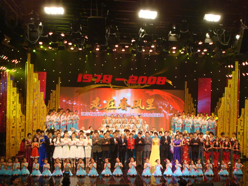 由江苏教育厅主办的江苏教育界纪念改革开放30周年大型主题演出《走在春风里》,11月28日在江苏教育电视台演播大厅举行。我校老年艺术团和工会许文玲老师参加了此次演出。老教师们亲身经历了江苏教育改革开放30年来所发生的巨大变化,满怀激情演唱了《我的祖国》,抒发了对祖国的热爱和对江苏教育改革开放30年来科学发展、率先发展的辉煌成就的赞美之情。