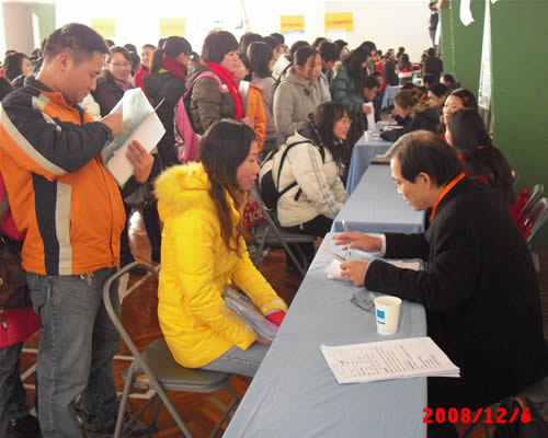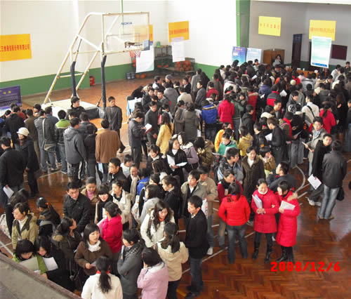 洽谈会当天,同学们冒着袭袭寒气,早早来到体育馆门前排起了长队。洽谈会开始后,同学们秩序井然地分批进场,17个招聘摊位前人头攒动,会场气氛非常热烈。虽然只有200个左右的招聘名额,但几乎所有的同学都向自己心仪的用人单位递交了推荐材料,从不少同学兴奋的表情可以看出,他们已经幸运地签了约。