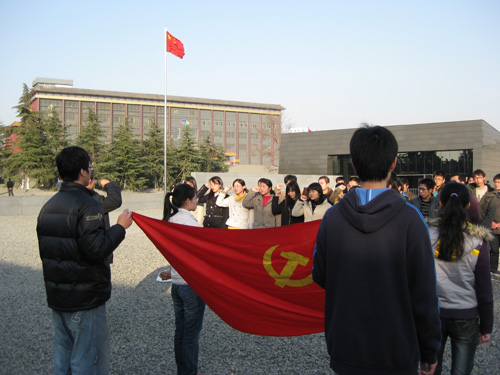 同学们参观了新馆的史料厅和遗骸厅。详实的图片和资料,触目惊心的同胞遗骨令同学们深受触动,内心沉重。随后,全体党员和入党积极分子在万人坑遗址旁举行教育活动,大家集体默哀三分钟,寄托对30万亡灵的沉痛哀思。学生党支部书记朱亚程发言,希望大家牢记历史,在和平年代更加努力发奋,共同为建立和谐社会添砖加瓦。党员代表刘淇发言,这次党日活动意义深刻,让大家在了解历史的同时也更加珍惜来之不易的幸福生活。最后,面对鲜红的党旗,党员们重温了入党宣誓这一庄严神圣的时刻。