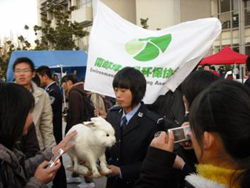 森林公安的二十多名同学带着他们学校特有的十几种国家级保护动物的标本来我校进行展示,我们环协的同学积极配合并努力宣传环保知识。本次活动主要展出的动物标本有福建狼、猪獾、雪兔、白鼬(又名扫雪)、草枭、蛇雕、等等。此次活动大家参与都很积极,纷纷过来主动询问有关野生动物的生活习性、分布以及国家所采取的保护措施等。