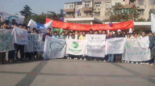 在南京,由南京化工职业技术学院“寸草”环保协会牵头,南京邮电大学“绿色风”环保协会等14家江苏高校学生社团共同参与,环保志愿者聚集大厂区金年华广场前向路过的行人宣传碳足迹,呼吁节约能源。有的志愿者利用旁边的易拉宝形象地阐述了“碳足迹的概念”和计算结果,有的志愿者给路人发放印有节能窍门的宣传册,还有不少路人参与了现场的节能问答活动,和志愿者们沟通自己生活中的节能窍门。