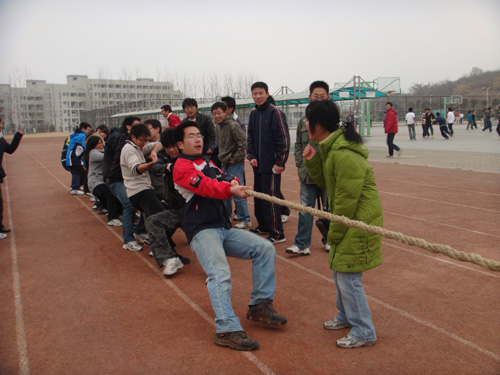 活动共分为三个项目:抢板凳、三人四足以及拔河比赛。参赛选手共同协作,勇往直前,为班级争光;拉拉队员也竭尽全力为运动员们加油助威。室外虽然寒风凛冽,大家却热情不减,呐喊声让赛场不断升温!
