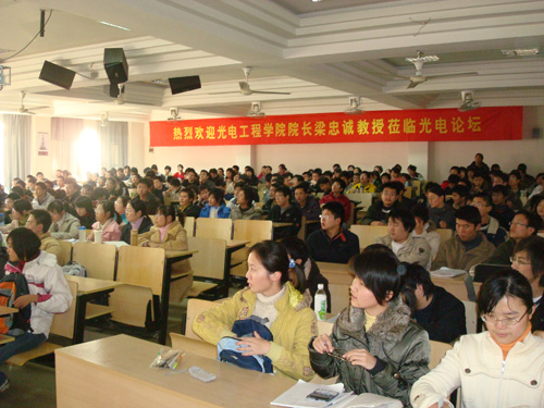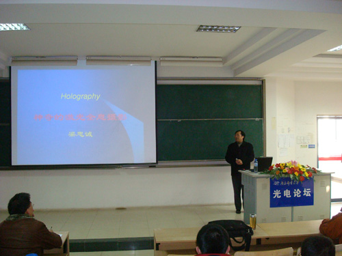 12月17日下午15:30,在教二的302教室,“光电论坛”邀请到光电工程学院院长梁忠诚教授做了题为《神奇的激光全息摄影》的科普讲座。讲座由光电工程学院党委副书记尹志丽老师主持, 260多名学生聆听了讲座。