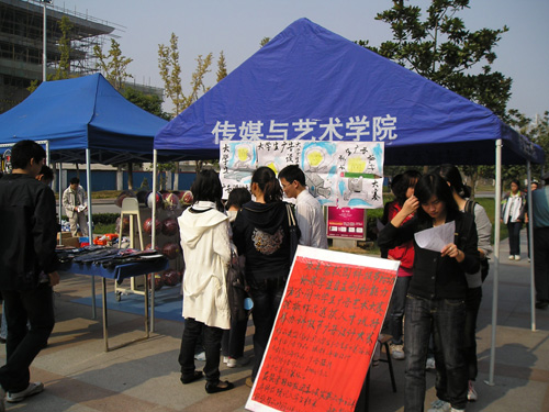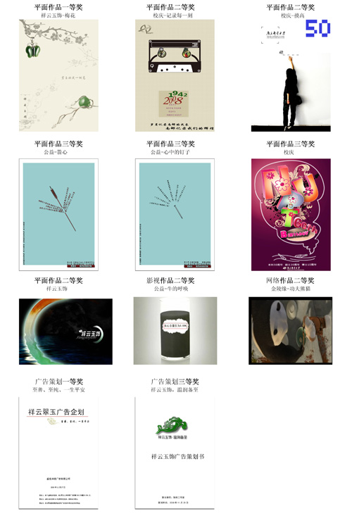 大赛组织者做了详尽周密的前期准备,不仅在学校张贴了手绘和彩绘海报,还通过网站、校报、南邮之声广播站加大宣传力度。在作品收集方面,组委会安排了专人在院大学生创新活动中心值班,并用专门的电脑供大赛作品存放。此次大赛共收到作品90件,经过初选,56件平面作品,4件网络作品,3件影视作品和5件策划作品进入复赛。进入复赛的作品,由学院专业教师进行点评并打分,最终评出了10个等级奖和10个优秀奖,颁奖晚会现场向获奖者颁发了奖品和证书。