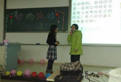 本期时尚达人周以电影《时尚女魔头》开场,电影充分的展示了暖冬时尚的魅力,为本次的时尚主题做了很好的铺垫。在随后的几天里,Girls' club荣幸邀请到了专业嘉宾做现场的讲解,来自外国语学院时尚达人们做现场的演示。真人的时装走秀,将气质与知性美细致融合,将自然的气质美与现代的高贵典雅美有效的结合,将活动气氛推向高潮。最令人期待的则是最后一天的时尚派对,装饰典雅的教室里摆设着各式各样的服饰,穿着亮丽的主持人以其极具特色的主持风格赢得了大家的掌声,晚会中穿插着有趣生动的互动游戏,并附有丰厚的礼品,与时尚主题紧密结合。