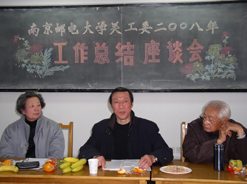 2008年12月24日,学校关工委在离退休职工处三楼教室召开了2008年工作总结座谈会,出席座谈会的有校领导、关工委主要成员和参加关工委工作的部分老同志等50多人。座谈会由关工委副主任、原学院院长郑薇薇主持。