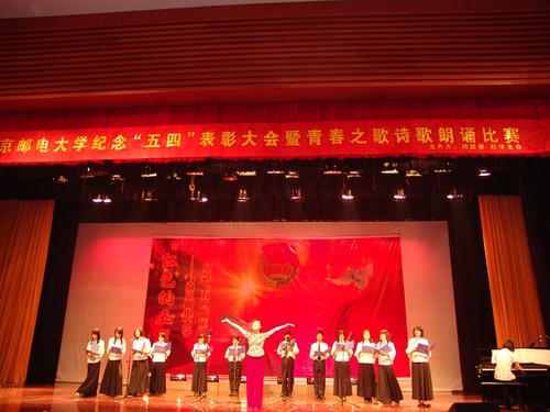 为了隆重纪念“五四”运动90周年,2009年5月6日下午,众多南邮学子齐聚大学生活动中心小礼堂,参加了“五四”表彰大会暨“青春之歌”诗歌朗诵比赛。副校长朱永平出席大会并发表讲话。