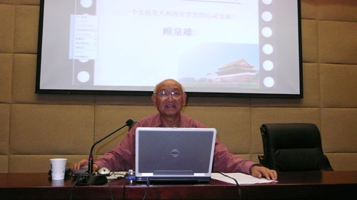 本次报告会的主题是“我和我的祖国——一个文化老人与青年学生的心灵交流”,顾老师以丰富的人生经历、独特的人生体验,和同学们分享了爱国、感恩、责任、事业、坚强。