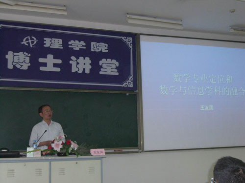 5月19日15:30在仙林校区教2-215,王友国博士应邀作客理学院“博士讲堂”,理学院信息与计算科学专业和统计学专业大一大二的同学参加了此次讲座。