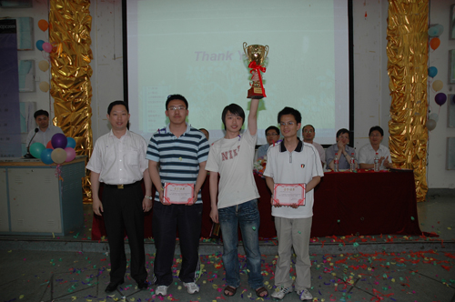 “IBM南邮杯”首届大学生程序设计大赛由教务处主办,计算机学院承办,IBM公司赞助。本次大赛参照ACM国际大学生程序设计竞赛规则。整个赛事从2009年3月起,经过组织报名、基础培训、预赛、个人决赛、团队决赛过程,历时三个月,其中参加个人组角逐的选手有100名,参加团队组角逐的选手有39个队。经专家评审后最终评出个人赛一等奖5名、二等奖10名、三等奖15名;团队赛一等奖5名、二等奖6名、三等奖11名;最佳女队1名;优秀女选手3名。通信与信息工程学院杨晓东同学荣获“IBM南邮杯”个人赛冠军,计算机学院兰韬、卜翔和李梦泽组成的团队荣获“IBM南邮杯”团队赛冠军。