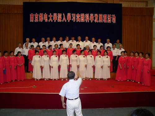 离退休处主动协助关心下一代工作委员会积极发动组织青少年学生和退离休教师学唱、演唱爱国主义歌曲。通过学唱、演唱爱国主义歌曲使师生们在潜移默化中接受爱国主义教育,陶冶爱国主义情操。7月8日下午,53位老同志在校科技会堂二楼报告厅饱含深情地演唱《在灿烂阳光下》,表达了老同志对祖国的热爱。整个过程进行了录音录像工作,随后将制作好的VCD光盘报送到江苏省教育关工委参加评选。