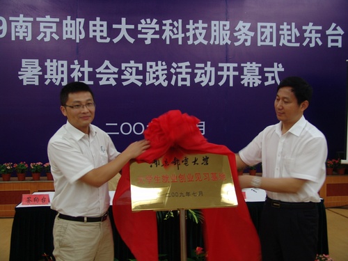 随后,我校与东台团市委签订了《南京邮电大学大学生就业创业见习基地协议书》,张翼书记与周俊副市长一同为“南京邮电大学大学生就业创业见习基地”揭牌,将开幕式的气氛推向了高潮。