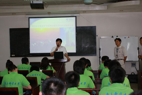 14日上午9:00,暑期社会实践前期培训的序幕正式拉开。院党委副书记彭刘生对同学三周的实践活动提出了要求并嘱咐大家注意安全。盐城电信人力资源部祁主任对南邮经管学子的到来表示热烈欢迎,并介绍了接下来三周的实践活动安排。在轻松的课堂氛围中,同学们了解了盐城电信的基本概况和电信文化,后端技术知识,电信营销知识和商务礼仪、商务沟通技巧。针对当前电信面向学生群体的业务,同学们积极和电信工作人员交流探讨,提出了不少中肯的建议,为电信在学生市场更好的发展献计献策。