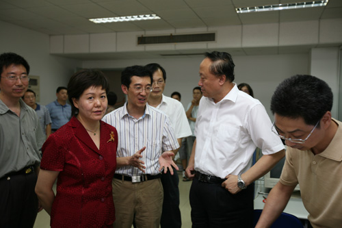 8月25日下午,中共江苏省委常委、南京市委书记朱善璐,南京市副市长王咏红率南京市有关部门负责人考察了我校无线通信、图像处理与图像通信等省重点实验室。校长杨震教授、副校长黄维教授陪同考察。