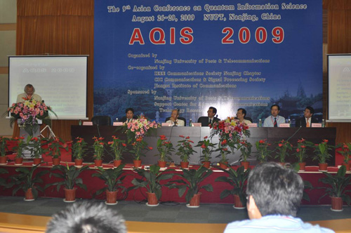 8月26日—29日,2009年亚洲量子信息科学会议将在我校召开,8月26日上午8:30,会议开幕式在我校科学报告会堂二楼报告厅隆重举行。捷克马萨里克大学Jozef Gruska教授、中国科技大学郭光灿院士、日本京都大学Kazuo Iwama教授、江苏省通信管理局副局长许二宁、我校校长杨震教授、副校长黄维教授、我校郑宝玉教授等在主席台就座。开幕式由Jozef Gruska教授主持,与会代表约180人参加会议。