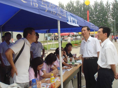 在整个迎新工作中,我校数百名学生志愿者表现出色,为新同学搬运行李,带领新同学办理入住和报到手续,以饱满的热情、周到的服务,赢得报到新生及家长的一致好评和赞许。杨校长和曹副书记挨个走访了各个学院新生报到点,向参加2009级新生接待的老师和学生志愿者详细询问了新生报到情况,并向大家表示了感谢和慰问。