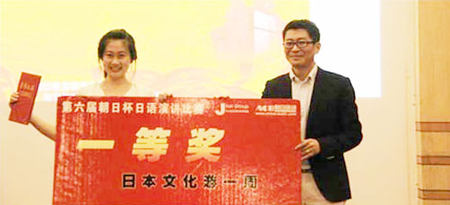 5月25日,第六届“朝日杯”大学生日语演讲比赛决赛在南京航空航天大学逸夫科技馆举行。经过激烈角逐,我校外国语学院日语专业2010级张倩同学获一等奖,2011级张彩云同学获三等奖。获一等奖的张倩同学将于暑期赴日本进行为期一周的访学交流。