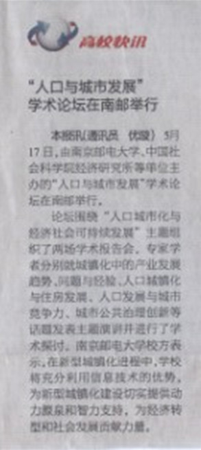 【江苏教育报】“人口与城市发展”学术论坛在南邮举行