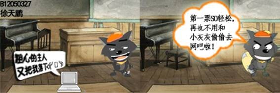 电脑:“粗心的主人,又把我落下。” 灰太狼:“再也不用和小灰灰偷偷去网吧啦!” 电脑:“休息要防狼。”