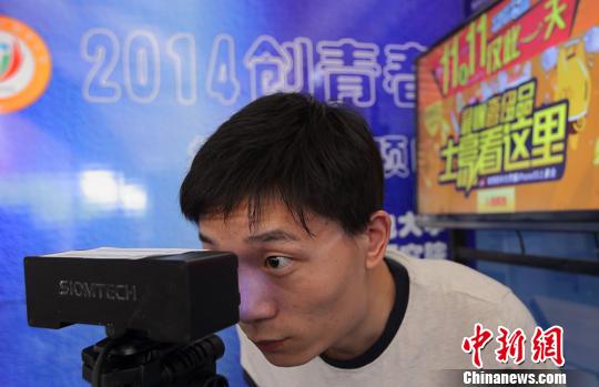 6月3日,南京邮电大学的研究生王涛在演示他和他的团队研发的虹膜支付系统,它利用存储终端把人的虹膜储存起来,在POSS机支付、网络支付、移动支付等安全认证时的全新支付方式,从源头上提供了安全有效的身份认证解决方案。当日,旨在支持大学生创新创意创造意识和能力,由江苏团省委、南京邮电大学等单位主办的2014“创青春”江苏省大学生创业大赛暨江苏青年就业创业季启动仪式在南京邮电大学举行,来自东南大学、南京农业大学、南京航空航天大学等102所高校的大学生们带着他们设计制作的各种高科技作品集中亮相,尽展创新创业成果和各种奇思妙想。